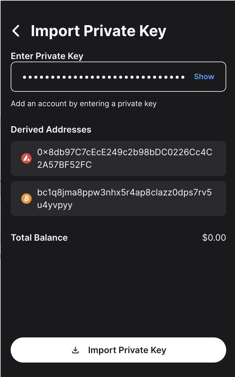 There enter the private key and click on Import Private Key.