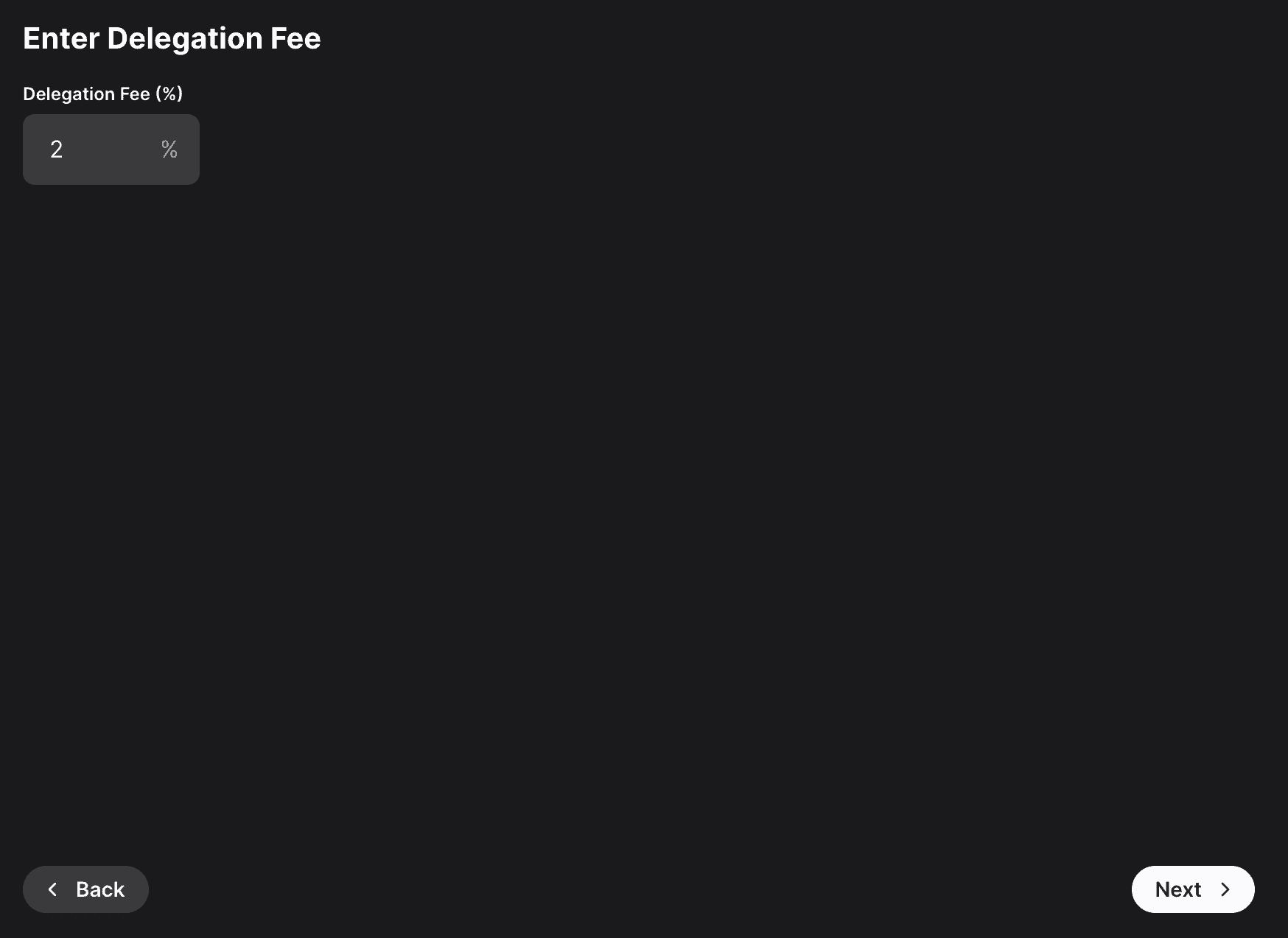 Other individuals can stake to your validator and receive rewards too, known as "delegating." You will claim this percent of the rewards from the delegators on your node. Click Next.